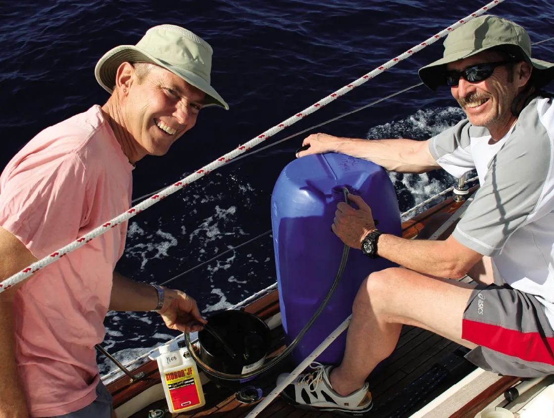 Use an oil change pump (not a drill pump!) to “sump” the fuel tank once a year. If you don’t have easy access to its baffled chambers, you can make a long, stiff wand from a length of copper or aluminum tubing and snake it down to the deepest corner of the tank. Suck out all the water and a little more, until the fuel is clear. Sumping tanks is common practice on aircraft and in refining.