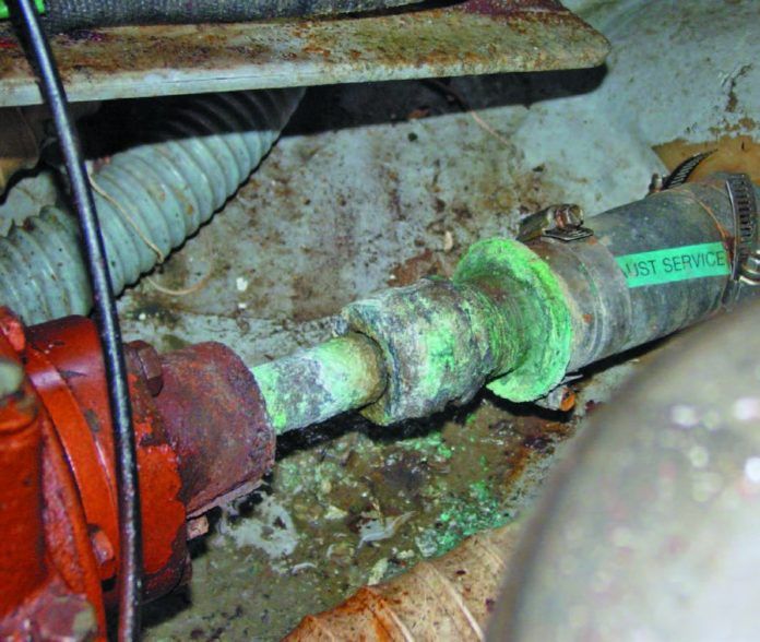 Corrosion and leaks are common problems you’ll encounter when inspecting your stuffing box. The shaft log hose, which connects the stuffing box to the hull in most installations, should also be inspected for deterioration due to age (a common problem), corroded hose clamps, etc.