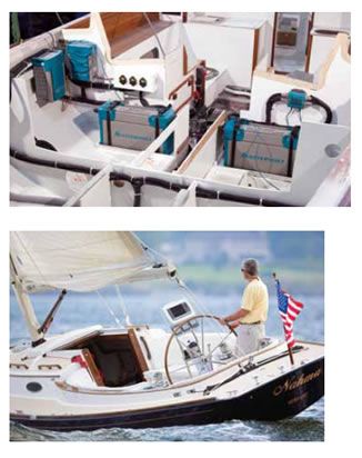 The owner, PS reader Vincent Argiro, has installed a battery-monitoring system from Maretron that allows him to monitor battery status in real time. Cruising range is about 12 nautical miles at 4 knots, according to range/speed data he has collected. The batteries take two hours to recharge at the dock.