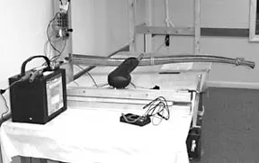 As nice as it would have been to take all these tillerpilots out on the water, it wasn’t necessary for these tests. Instead, we hinged a tiller to an upright and put a bench underneath it. At one end of the bench we clamped a stack of wood with a hole drilled for the bearing cups that accept the pins at the outboard ends of the pilots; at the other end we rigged a gantry with a hanging block through which we could swing 20-lb. and 44-lb. weights to oppose the pilots (see table notes), while measuring hard-over times.