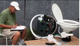 The operation of the ball valve at the bottom of the bowl depends on the tight fit of two, round, 7-inch rubber gaskets. These seals are Teflon coated and should last for years, but may need to be checked and cleaned periodically in order to keep an airtight seal. Cleaning is a simple matter of reaching down from the bowl with a sponge or brush, just as you would clean a home toilet. The use of clean fresh water will minimize the build-up of salts, minerals, and foreign material that might inhibit this seal.