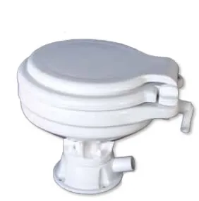 Bottom line: This Lavac system is highly regarded by many cruising sailors for its simplicity and the robust construction. The diaphragm pump is difficult to clog, and if it does, it is fairly easy to clear. Flushing is efficient, requiring about 2 to 4 pints of water per flush.