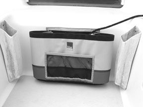 One feature that particularly distinguishes some of the bags from Blue Performance is a light, waterproof hood tucked into a space behind the bag when not in use. If you want to protect the contents of the bag from rain or spray, you simply open an enclosure at the bottom of the bag, pull out the hood and stretch it around the bag. These hoods cinch down tight by of a sewn-in bungy cord and a plastic spring-loaded tension lock. Other Blue Performance bags, like the Cockpit Combi Bag (BP 405) have flapped enclosures sealed with hook-and-loop clasps to protect sensitive items. And the cabin storage bags have tops that cinch closed.