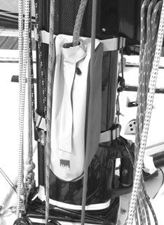 Blue Performance manufactures over 30 products. Apart from the bulkhead-mountable halyard and sheet bags and combo bags (the latter have winch handle pockets and mesh outer pockets for smaller items), there are also sunshades, awnings, hatch covers, elastic sail stops, see-through chart covers, mast-mount halyard bags, lifeline bags, winch covers, outboard motor covers, and other specialty storage bags.