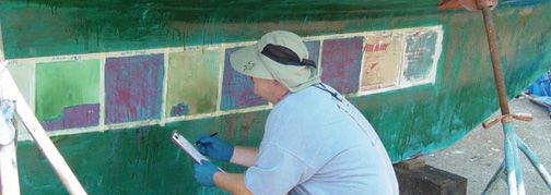 Our test boat was a 1978 Union 36 with three to four layers of blue, ablative bottom paint. (We mention the color here because our test boats gelcoat below the waterline is red, making the amount of paint removed relatively easy to see.) Testers applied each stripper-following each manufacturers instructions to the letter-to 1 foot x 1 foot sections of our test boats keel. Test results are based on the amount of paint removed from each test panel with a putty knife after the products maximum recommended dwell time. The percentage of paint removed given in the test results is approximate, but we believe a fair comparison of how each product performed. Also compared was ease of application, cleanup, price, and performance. The high temperature on the day of our test was 85 degrees.