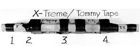 To make it a match race with what was in hand, we used black Tommy Tape with the exact same specifications. We had to get fresh Tommy Tape because what we had left from the prior test seemed somewhat dried out. A Tommy Tape spokesman said we got that right: unless tightly sealed, these tapes tend to gradually lose their morph.