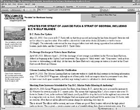 In this area, the outstanding book is the Waggoner Cruising Guide, which purports to be “the bible” for Northwest boating, and probably is. The 318-page 10th anniversary edition costs $17, certainly a Best Buy in a cruising guide. It covers the waters from Olympia, Washington (at the south end of Puget Sound), to Prince Rupert, 30 miles short of the Alaskan border.
