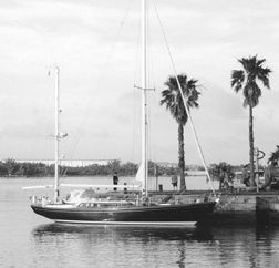 Slab or jiffy reefing is much less expensive, and, with battens, allows a full roach on the mainsail (to preserve the already modest 14.7 sail area/displacement ratio), and is pretty much foolproof. A continuous line system keeps the crew from having to go forward to the mast, but does involve more friction of control lines through lead blocks. The furling system for the mizzen worked flawlessly, no doubt because of the lesser forces involved.