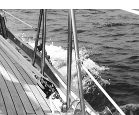 The other noteworthy feature lies inside the stanchions, where tank vents are cleverly hidden. There’s a hole at the stanchion base for excess liquid to escape. Overfilling the fuel tank can cause some diesel to seep out of this hole and onto the deck, but that can happen with a vent located anywhere. The stanchion location eliminates unsightly vent fittings in the hull or cabin side, and makes it hard for water to enter. About the only possible problem we can foresee would be if an insect made a nest inside the fitting; that could be hard to diagnose.