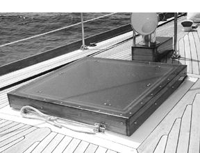 Hinckley prides itself on making as much of the boat’s components as possible, including metalwork like the stem fitting, which on some models is quite elaborate. The hatches are made in-house and are of simple design. The sides are wood and the tops a translucent acrylic. They fit over the high lip molded into the deck, and there are rubber gaskets to make a tight fit. However, on this delivery, green water on deck squeezed through anyway, soaking the area below.