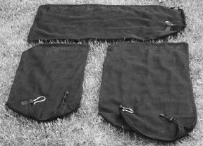 Aboard boats, bags in which to gather up and stow various unhandy gear and equipment—from sails to a charcoal grill to wet clothing—can be invaluable. At a small company in East Prussia, PA, called DRD, the principals there have thought about this issue long and hard. The result is a package of three very strong, heavy nylon mesh bags with drawstring tops and small, stainless steel carabiner hooks to hang up the bags. They even come with a hangar plate (not shown), should you choose to store the bags side-by-side. The bags are shown in this photo sitting on grass with their corners (the ones with the hooks and drawstrings) turned back.