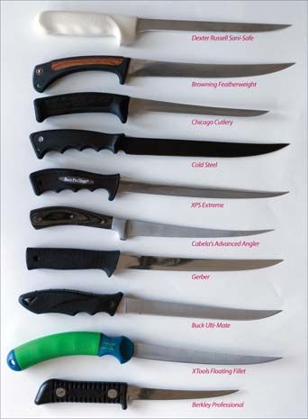 Practical Sailor rounded up 10 fillet knives from several marine retailers, with blade lengths ranging from 6 to 9 inches and prices running from a low of $10 to just under $40.