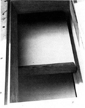 A small lip on the top of the ice shelf will keep the ice from sliding off when the boat is under way. Once again, a strip of teak can be used to make this lip (fiddle), and it serves the additional function of stiffening the shelf — particularly important when thin sheet acrylic is used.
