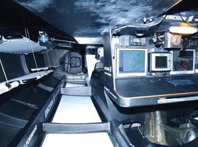 Unfortunately, the first generation of almost any new racing class is less than perfect, and VO 70s are no exception. Even with the additional righting moment of the can’ting keel, there are huge performance gains to be made by getting every possible pound out of the boat and into the bulb. All non-essential structure is removed, and what remains is pared to the absolute limit.