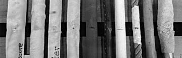 Aside from the Davis removable, the natural or synthetic hoses generally performed considerably better than the fabric guards. Each behaved somewhat like a pencil eraser. Tiny bits of rubber were shaved off with each pass of the abrasive rod. After a few hours, the bits made a neat pile. They lost the lowest percentage of wall thickness, with the neoprene Perma Buoy sample suffering less percentage loss than the rubber Seafit or the common garden hose.